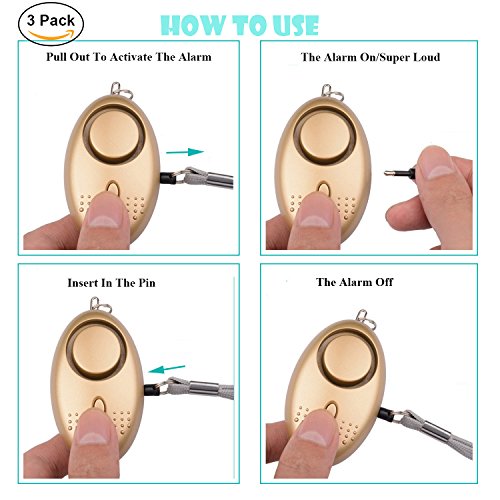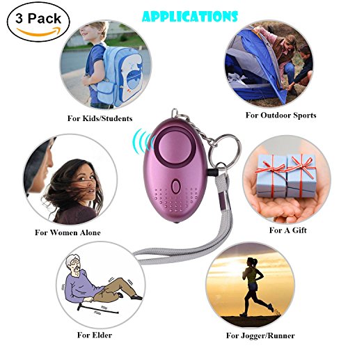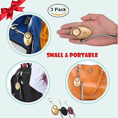 Personal Alarm Security Self-Defense 120 DB Portable Device Elutong New Arrival Keychain Emergency Safety Sound Product With LED Light As Bag Decoration For Women,Kids,Girls,Elderly,Jogger(3 Pack)