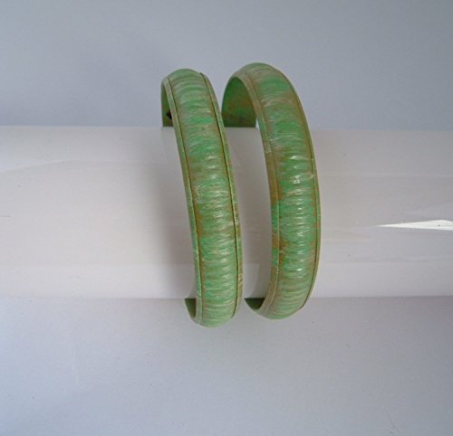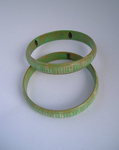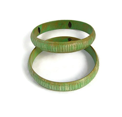 -. Title : 2 Upcycled vintage Green Bangle Stack bracelets Boho Chic Bohemian Jewelry