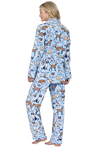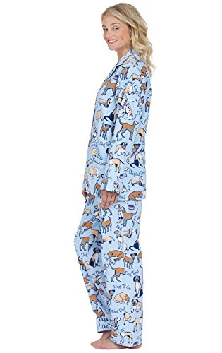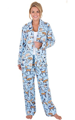 PajamaGram Women's Dog Tired Flannel Boyfriend Pajamas, Blue, SML (4-6)