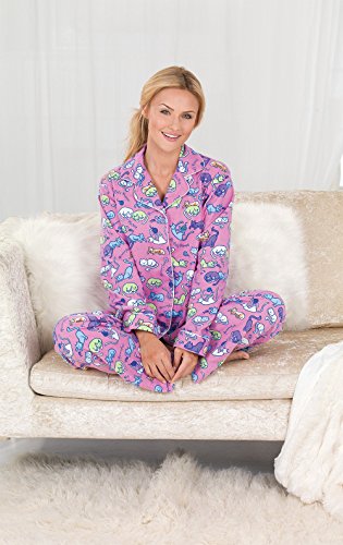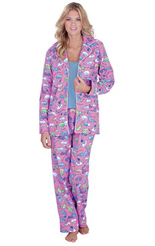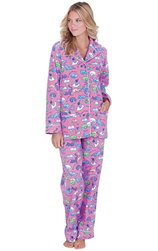 PajamaGram Women's Cat Nap Flannel Pajamas with Button-Up Top, Pink, SML (4-6)