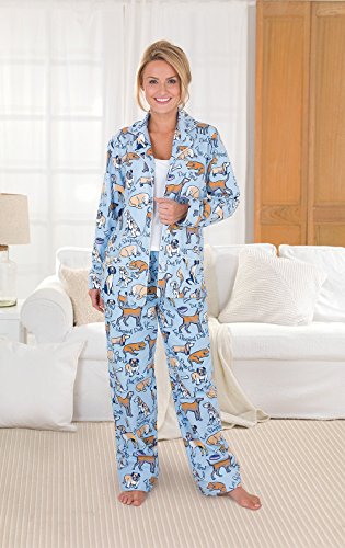 PajamaGram Women's Dog Tired Flannel Boyfriend Pajamas, Blue, LRG (12-14)