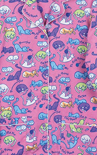 PajamaGram Women's Cat Nap Flannel Pajamas with Button-Up Top, Pink, MED (8-10)