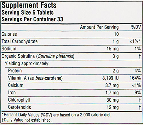 Source Naturals Spirulina 100% Organic 500mg, Nature's Green Superfood, 200 Tablets