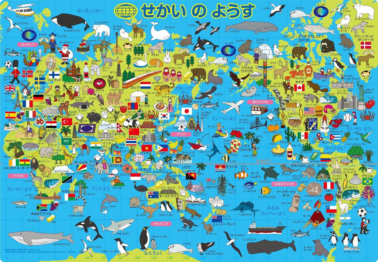 I bought it for my 4 year old son. It is puzzle puzzle even if you are looking at lively and illustrious illustration of local specialties, places of interest etc on the world map. There are lots of illustrations of animals living there, and for sons who like creatures it seems like a point. Sometimes I am addicted to memorizing national flags, and my interest in the world seems to be spreading. Because explanation sheet of illustrations is attached, it is good that this is easy to answer to the question of something.