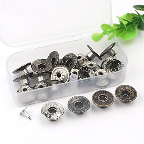 20 Pieces Jeans Button Tack Buttons Snap Fastener Press Studs Metal Replacement Kit with Storage Box, Diameter 17MM(0.67 Inch) (Style 5)