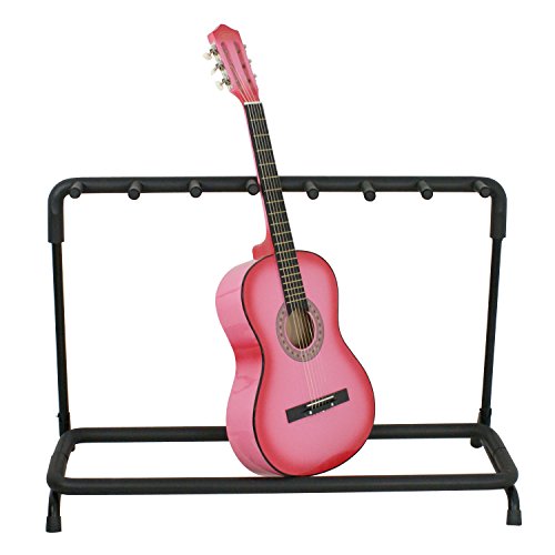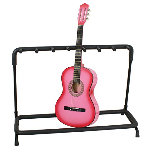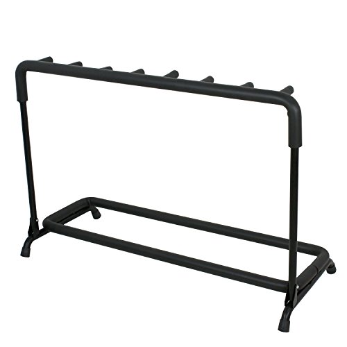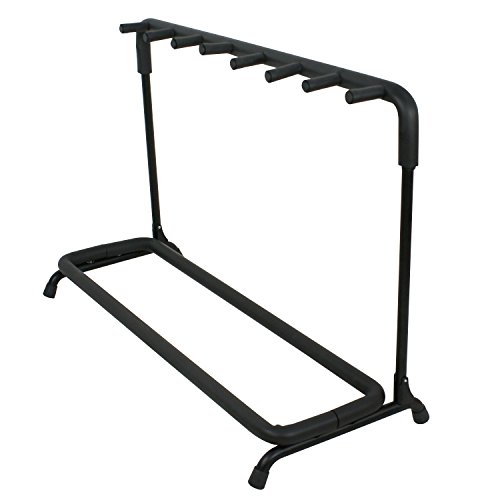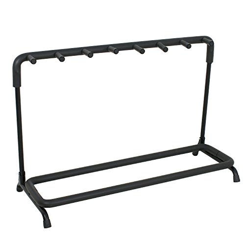 Studio : Smartxchoices Publisher : Smartxchoices Product Description We are proud to present our brand new 7 Guitar Stand. This deluxe 7 guitar stand can hold acoustic, electric and bass guitars making it easier to keep your instruments in a single place. With its padded tubing, your instruments are sure to be protected from scratches, dings, or broken strings. It folds down for easy storage and is light weight for easy transportation to and from gigs or practices. The base is sturdy and durable, which enables the stand to stand freely and securely without worry. Grab this must have guitar stand before your next ding or scratch! SPECIFICATIONS: Overall Size: 38.5"(L) x 16"(W) x 32"(H) Fold Size: 38.5"(L) x 30"(W) x 5"(H) Distance between Pegs: 3.74"(W) Material: Iron Thickness: 0.5mm PACKAGE INCLUDES: 1x 7 Guitar Stand 0
