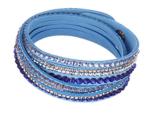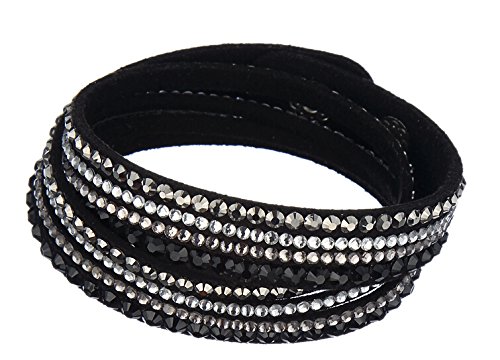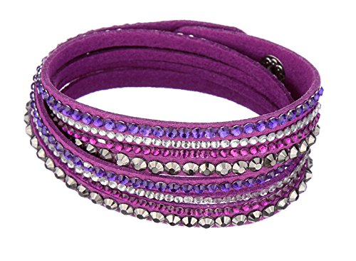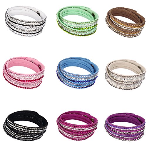 -. Title : ThyWay Unisex 9 Pack Premium Crystal Rhinestone Multilayer Bangle Bracelet Leather Velvet Lining Wrap Wristband, Button Clamp