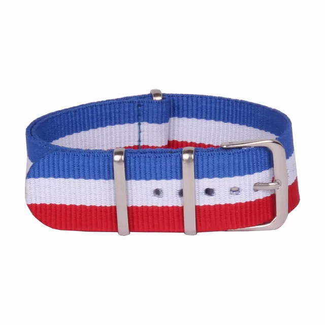 [해외] 도매 18 미리메터 남자 여자 프랑스 컬러 레드 화이트 블루 나일론 군사 시계 스트랩 시계 밴드 버클 짠 팔목