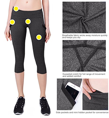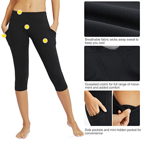 Baleaf Women's Running Yoga Workout Capris Leggings Side Pocket for 5.5" Mobile Phone