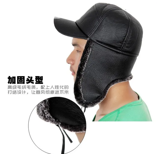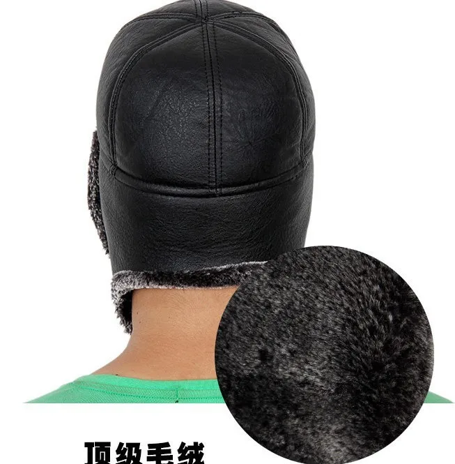 남성 겨울 모자 파일럿 모자 귓바퀴 남성 가짜 모피 응원 야외 탭 따뜻한 모피 모자 캡 남성 겨울 모자 귀 플랩