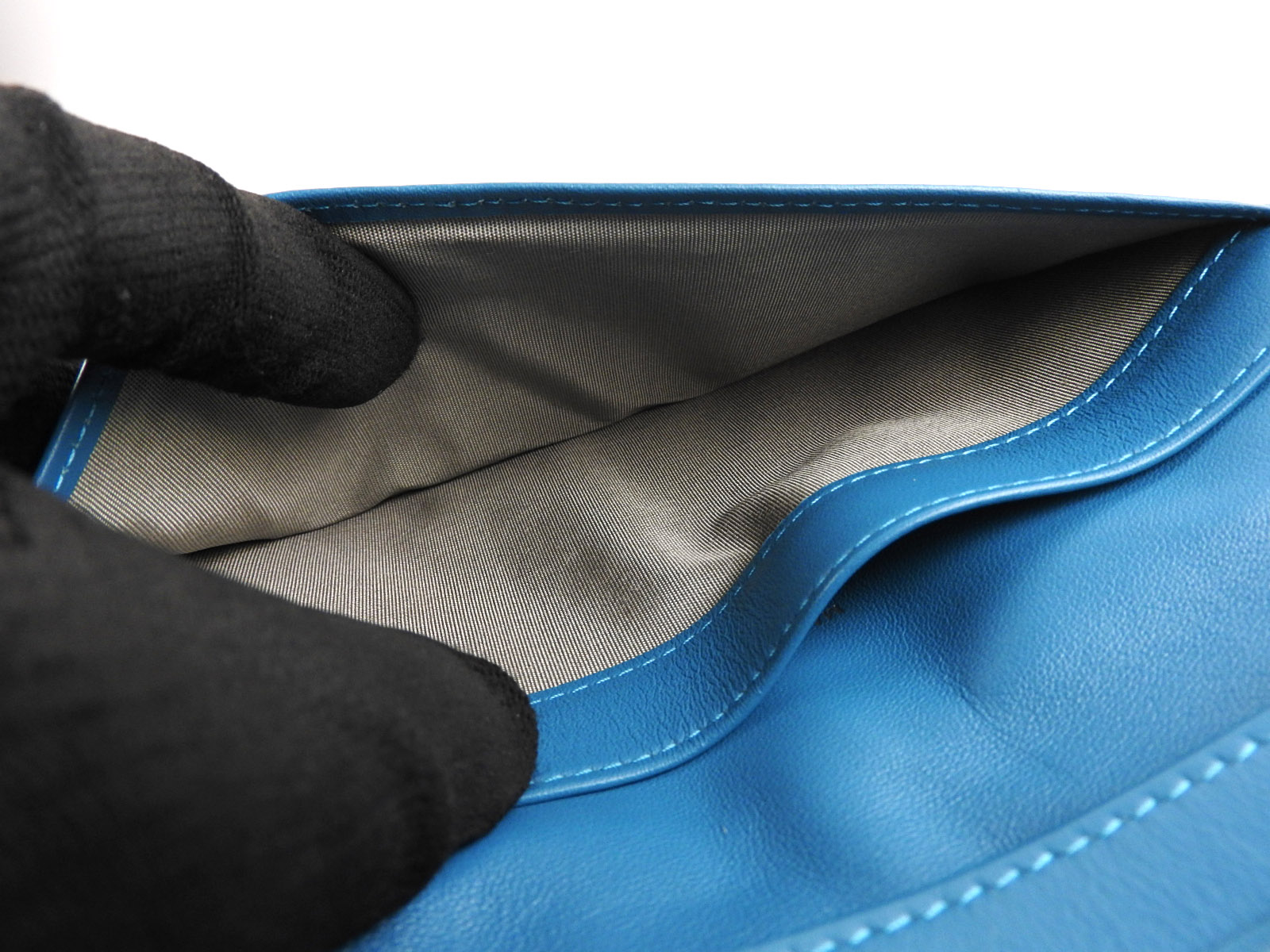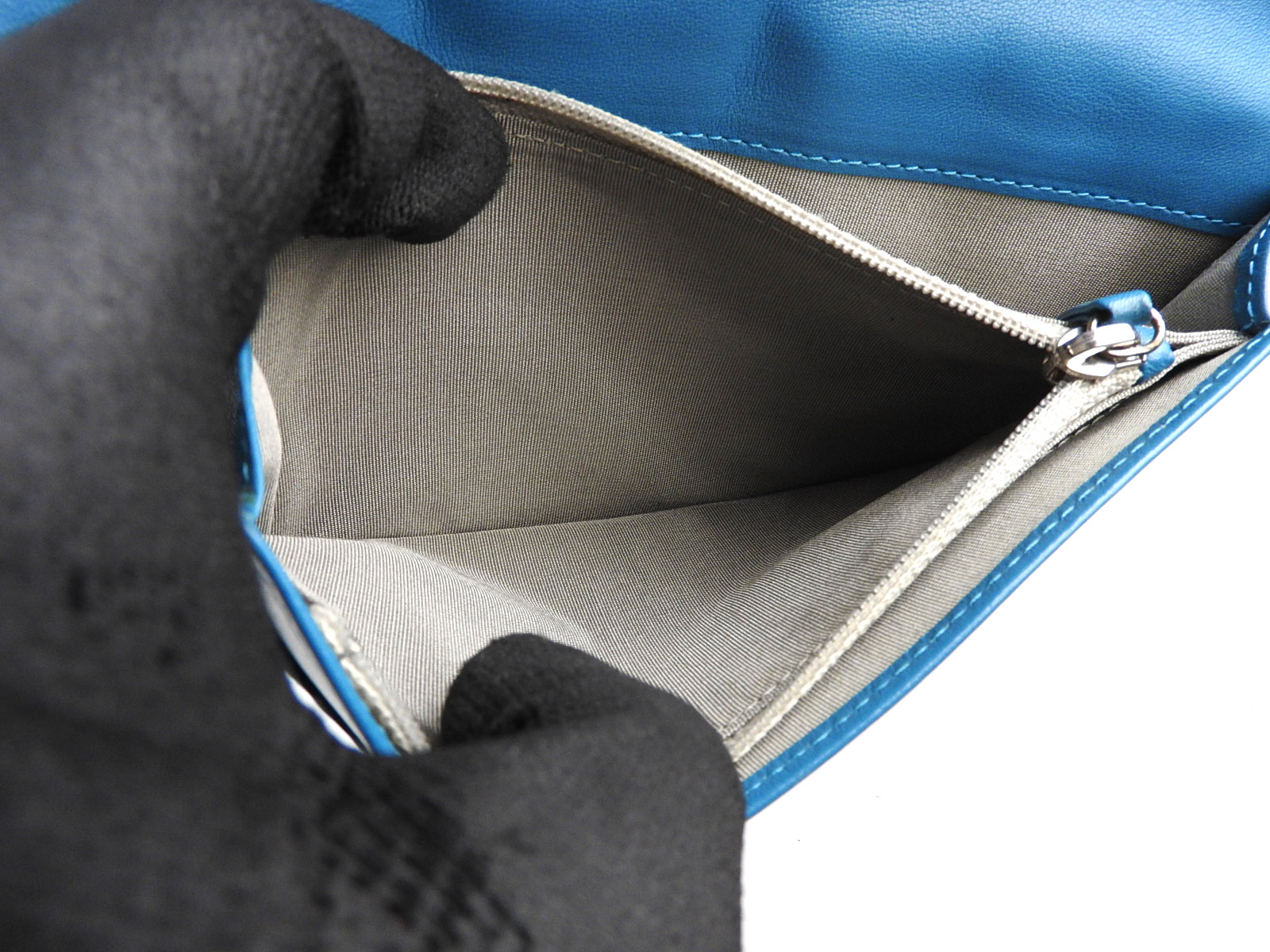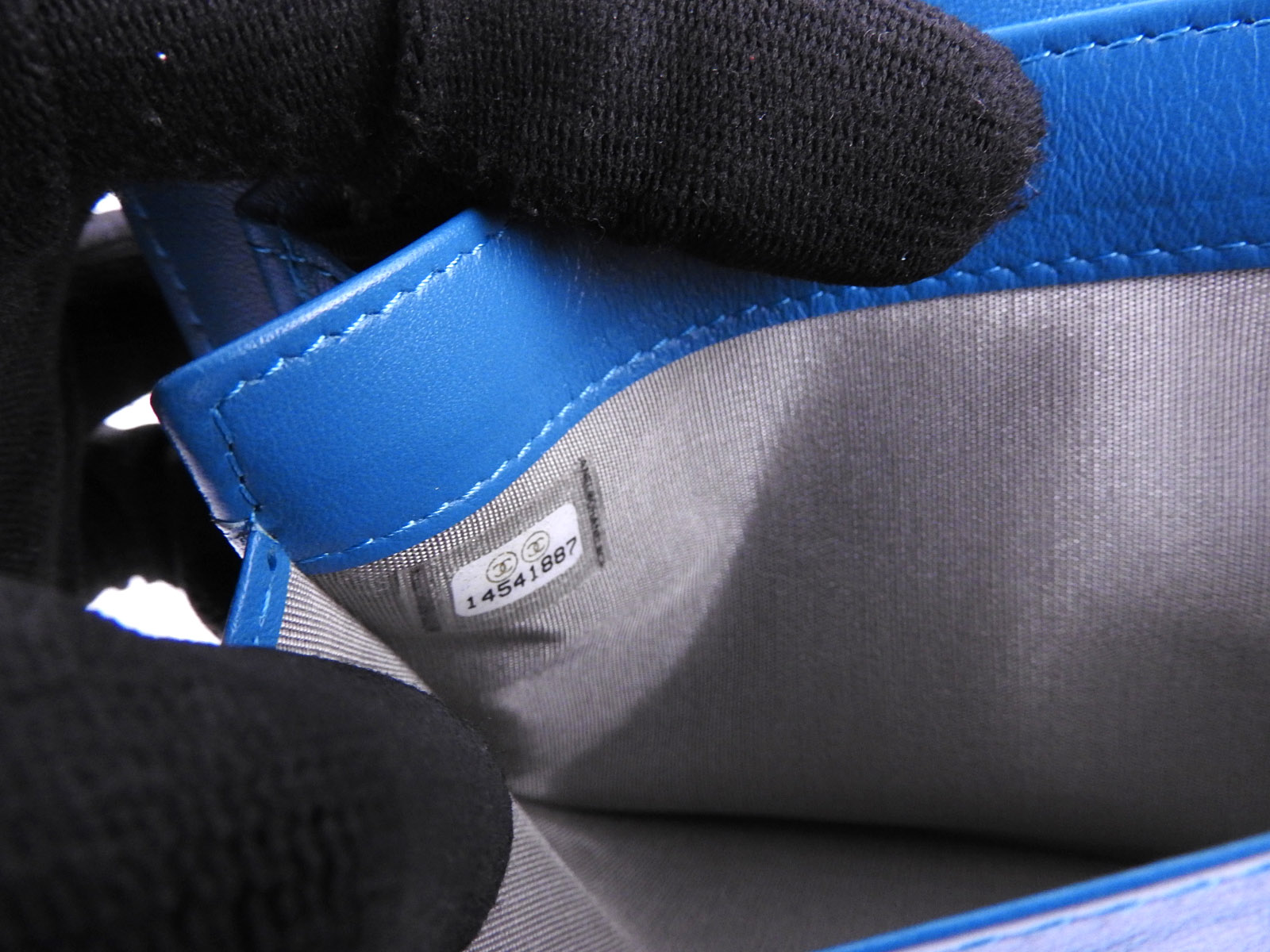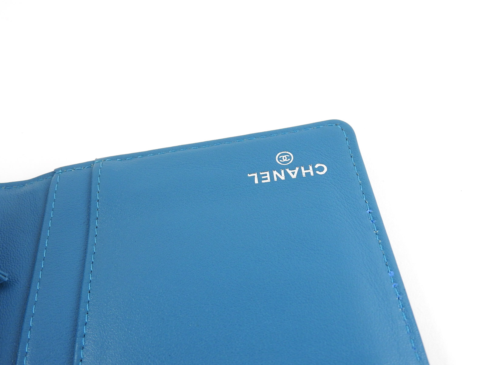 Auth CHANEL CC Brilliant Matelasse Bifold Long Wallet Enamel Patent Leather Blue Silver A48691 A-7527