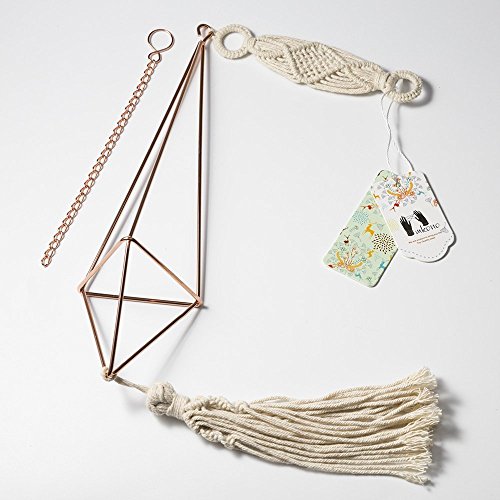 - The Size of Himmeli: 3" Width x 10 5/8" Height. The chain length: 7 1/2". The Size of Macrame hanger: 2" length. The tassel length: 2 3/8". Mkono is a registered trademark and our product is professional manufacturing and sole selling.