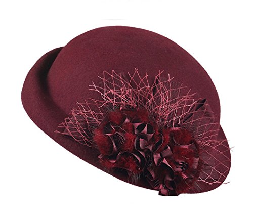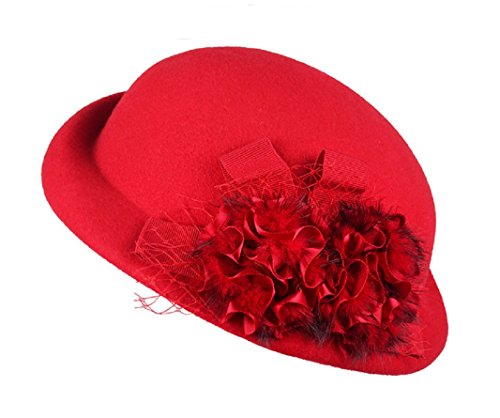 (FUNNY365)/Accessories/Hats/DIRECT FROM USA/Women's Flower Wool Cloche Bucket Hat Dress Winter Cap Elegant FUNNY365