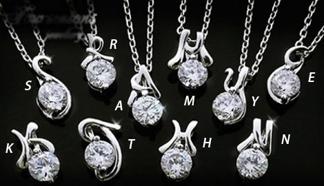 원 앤드 온리 쥬얼리 【SWAROVSKI GEMS】 이니셜 목걸이화이트 골드 정규 스와로브스키 스톤 채용 젬 펜던트