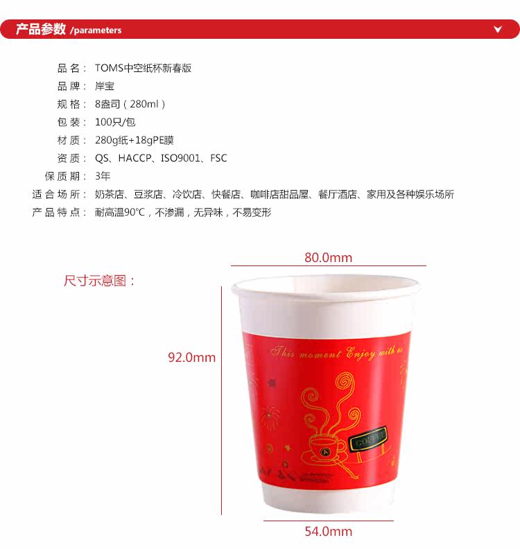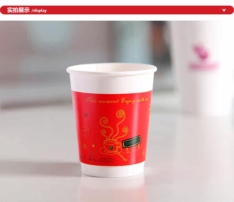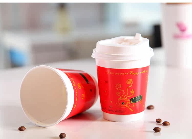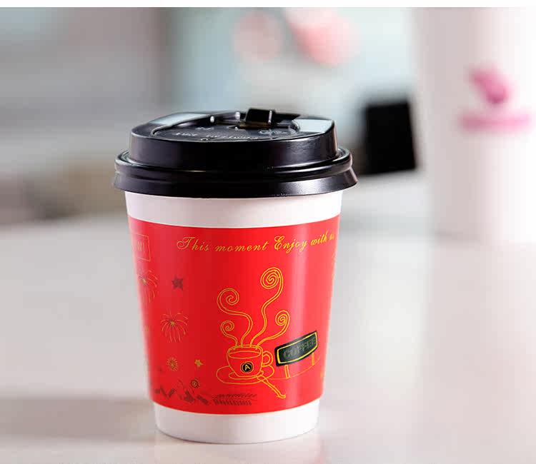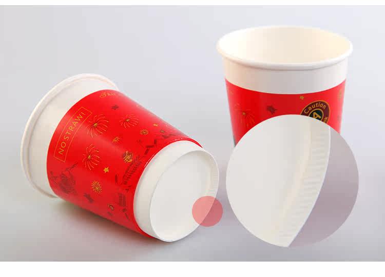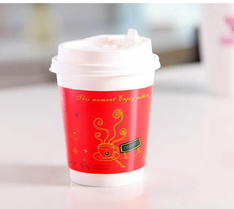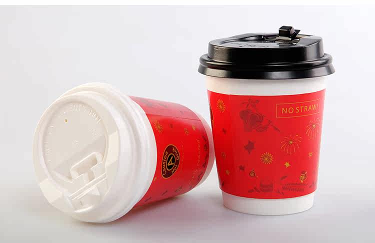 一次性纸杯新春中空防烫双层纸杯一次性咖啡杯奶茶杯带盖