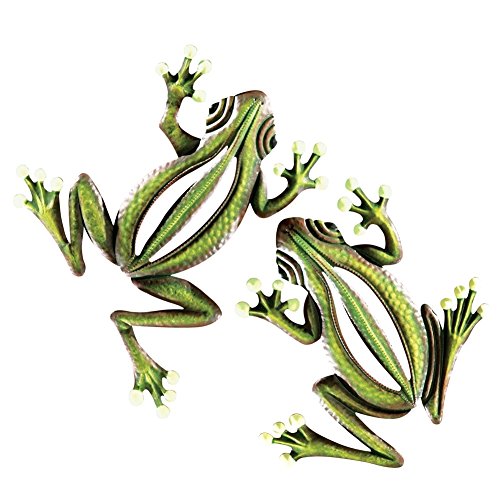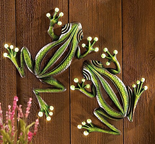 Hand-painted 2 piece set of glowing frogs wall decor adds charm to your backyard, patio or deck