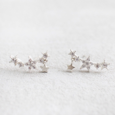 귓볼 라인에 맞춘듯 자연스러운 곡선이 예쁜 귀걸이입니다. 3개의 별들 아래로 앙증맞은 별 하나를 달아줘 달랑거리는 귀여움을 느낄수 있어요:) 깜찍하면서 여성스러움이 느껴지는 귀걸이로 포인트 이어링으로 정말 좋아요. 자세한 사이즈와 디테일은 상세페이지를 통해 체크해주세요.
