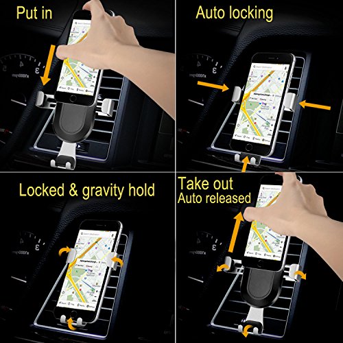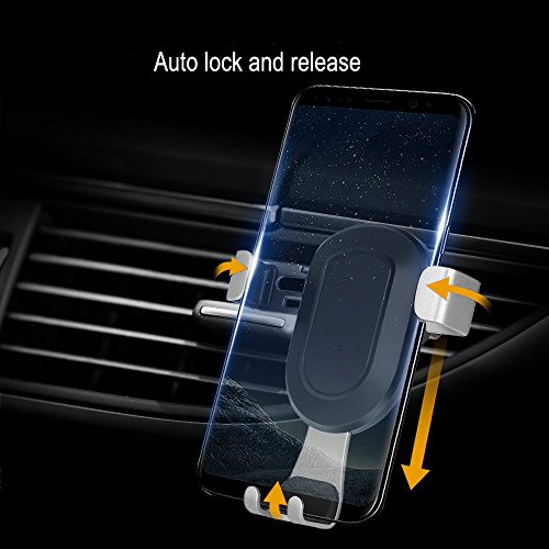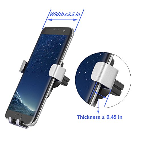 Phone holder for car, Smart No Touch Universal Air Vent Car mount for iPhone 7 / 7 Plus / 6 / 6s Plus, SE, Samsung Galaxy S6 / S7 / S7 Edge / Note 6 / 7 and Other Smartphones,Silver