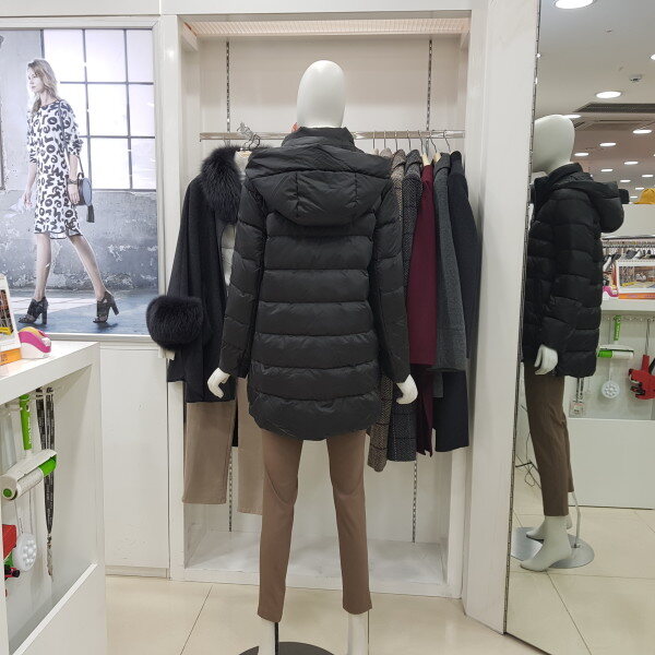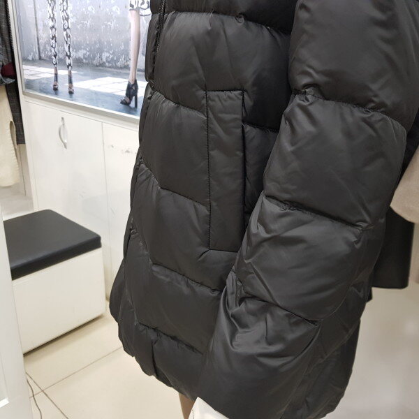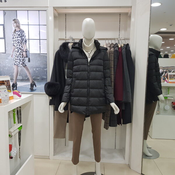 덕 충전재가 들어가 가볍고 따뜻한 미디움 기장의 다운입니다