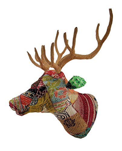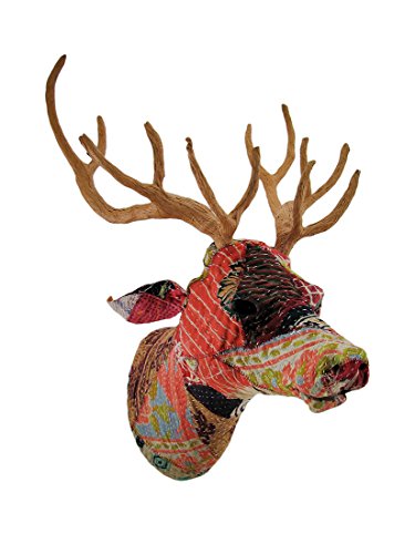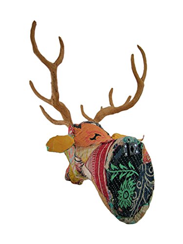 Paper Mache Wall Sculptures Recycled Indian Sari Fabric Covered Deer Head Wall Mount Bust 14 X 20 X 14 Inches Multicolored