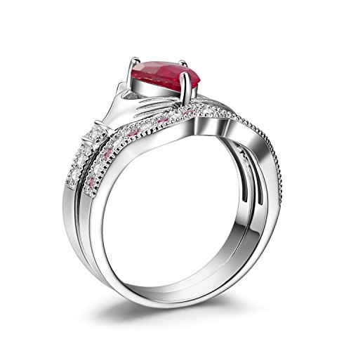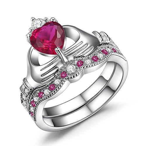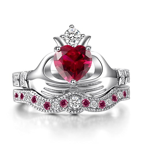 -. Feature : Sterling silver wedding & engagement ring set with heart-shape created ruby and simulated diamond accents / This claddagh ring bridal set is a traditional Irish ring which represents love, loyalty, and friendship / Great as friendship rings, engagement & wedding rings, bridal ring set, or a gift to your daughter / Heart-Shaped Stone: 7mm * 7mm, Ring Size: US 5-9 (Not Including Half Sizes), Gender for women / Comes with a high quality Caperci ring gift box - perfect for gift giving