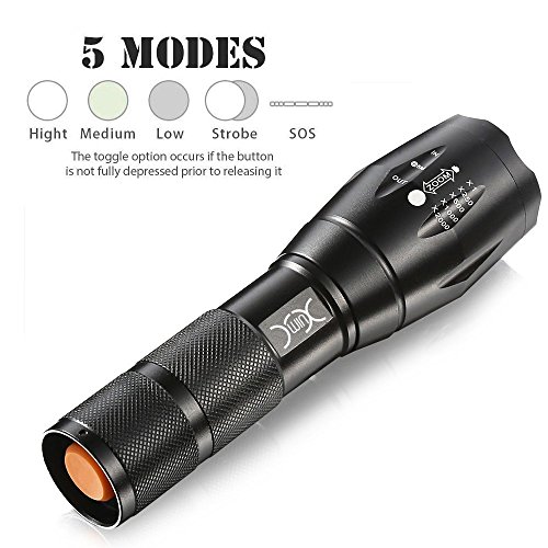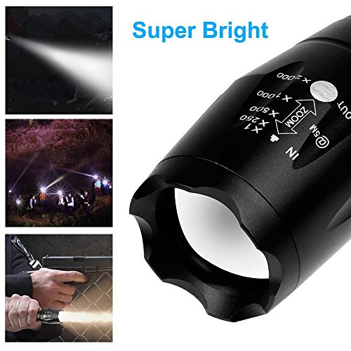- 【LIGHT MODES & ZOOM FUNCTION】 Full Brightness, Medium Brightness, Low Brightness, Strobe Brightness, SOS. Adjustable focus for close or long range. Functions as a spotlight that throws an intense beam of light up to 800 feet ahead or compact small floodlight that brings illumination to a wide area.