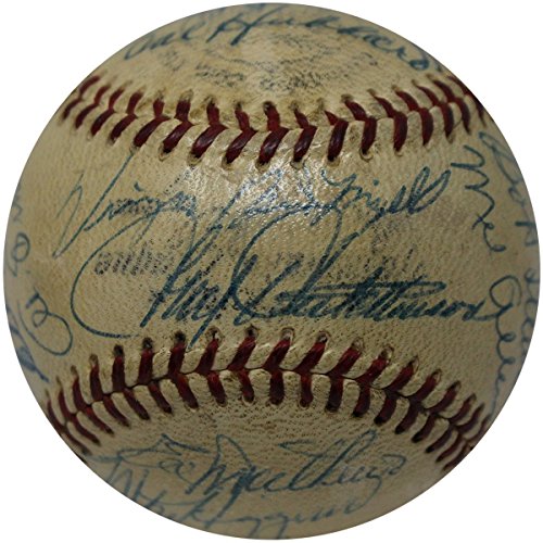 Hall of Famers and Stars 24 Sig ONL Giles Baseball JSA (Stengel Mathews Simmons Hubbard Boudreau Musial Schoendienst HOF)
