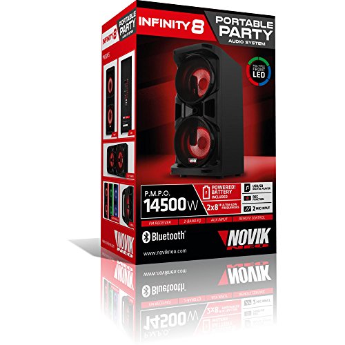 -. Title : NOVIK NEO IMPACT ONE Infinity 8, 2-Way Portable Powered Speaker System, Rechargeable Battery Powered, Bluetooth, PMPO, Woofer, LED Display, REC Function, USB/SD, FM Radio, 14500W