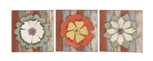 Benzara Antique Styled Floral Wood Metal Wall Decor Assorted, Set of 3