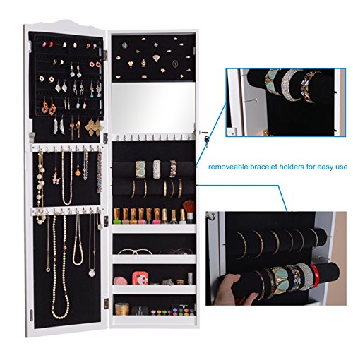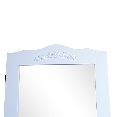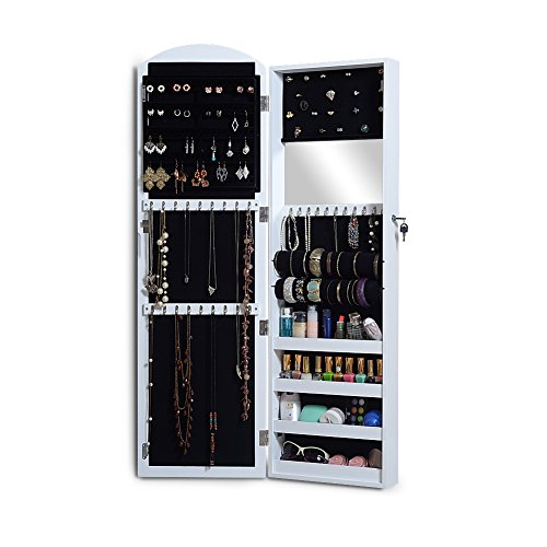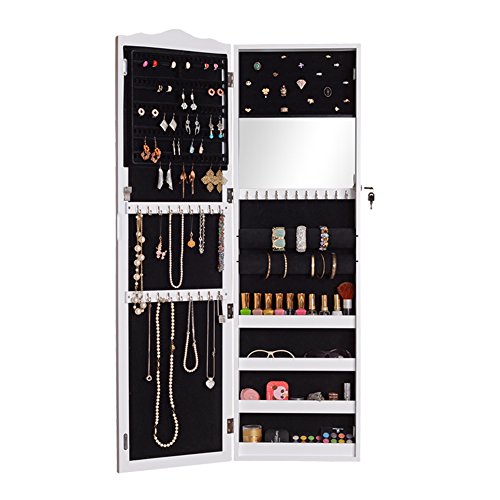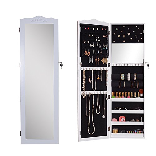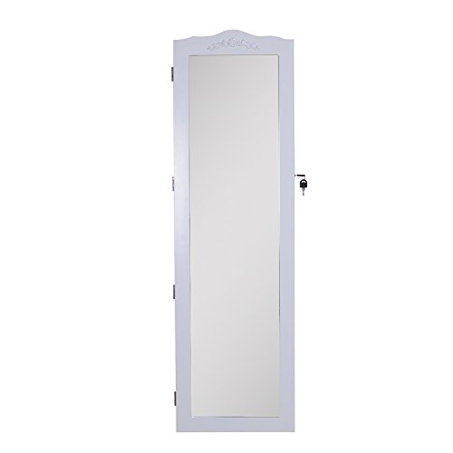 GLS White Wall Door Mount Locking Mirrored Jewelry Armoire Makeup Cabinet Wooden