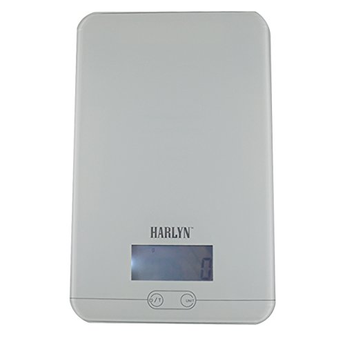 Harlyn Multifunction Digital Food & Kitchen Scale - Tempered Glass - Elegant White - 11 LB Capacity - Tare Function - with Clock - LCD Backlight (cooking, baking, jewelry weight, portion control)