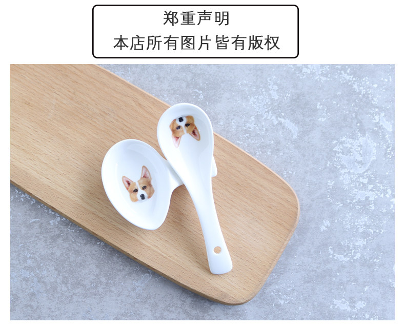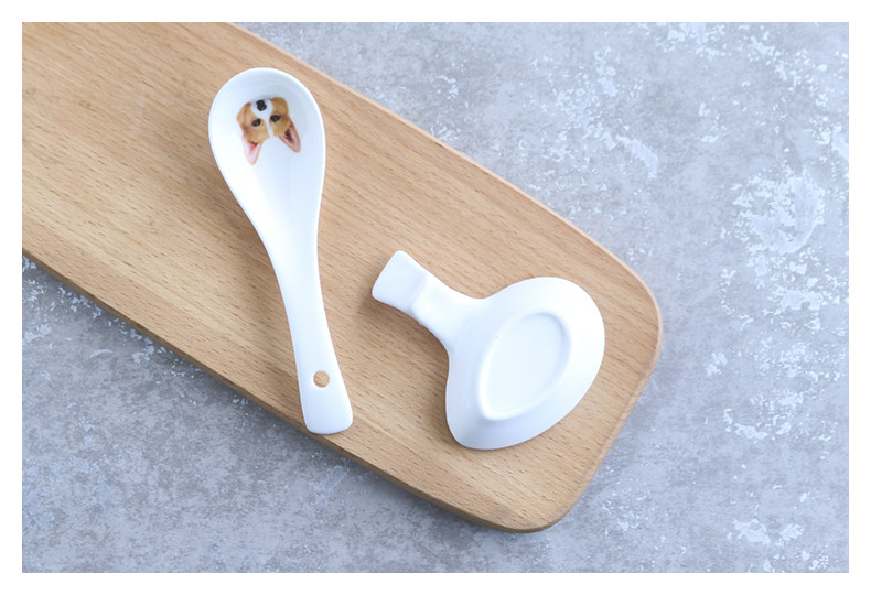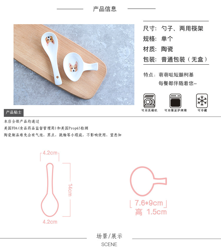 呆萌小腿短柯基系列家用陶瓷餐具两用筷架米饭勺子小汤勺适用微波