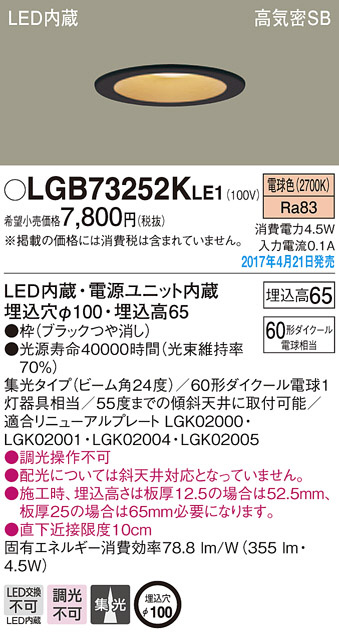 ●寸法(mm):埋込穴φ100・埋込高65