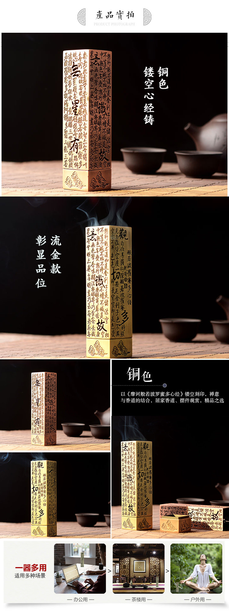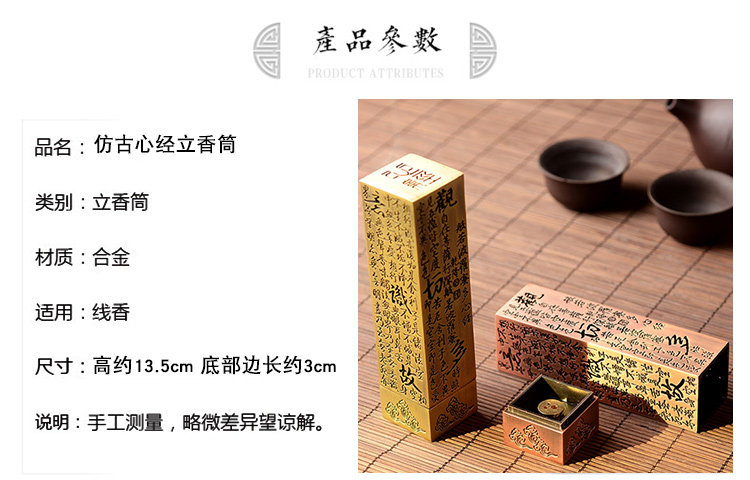 仿铜方款心经线香炉香插 立式香炉沉香檀香炉香筒香薰炉