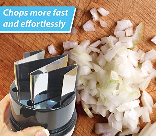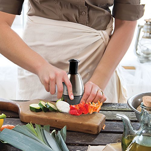 Great versatility! It can be used to mince onions, garlic, fruits, vegetables, nuts, breadcrumbs, and much more fast and effortlessly!