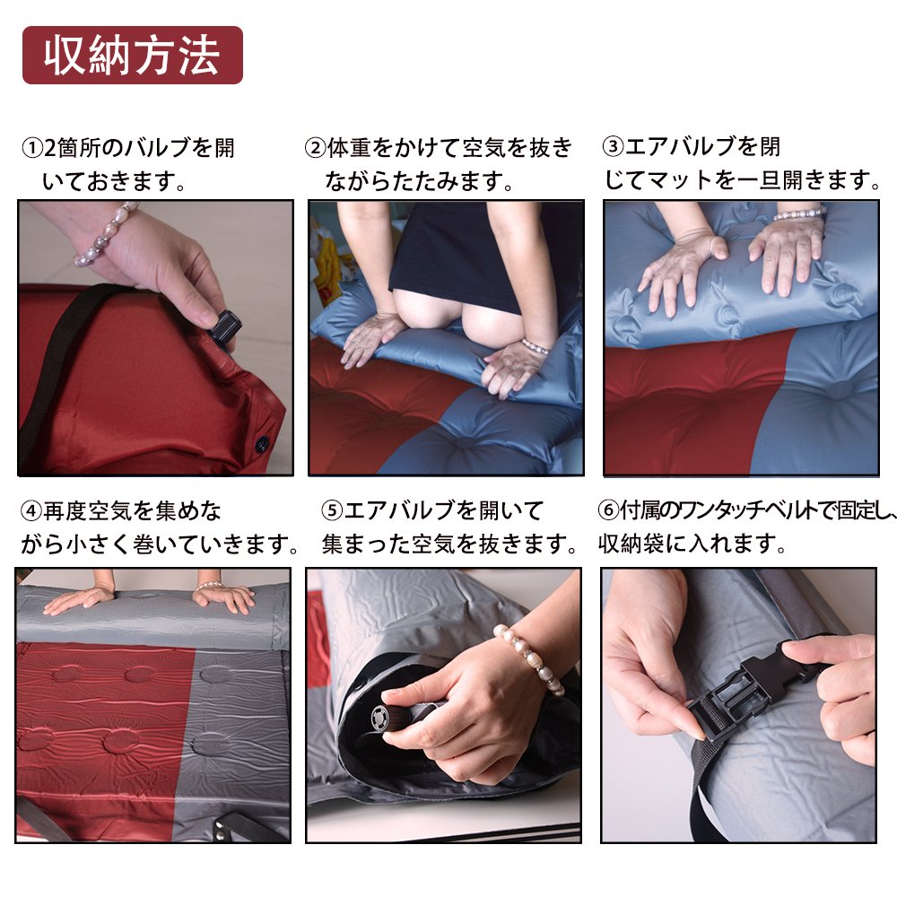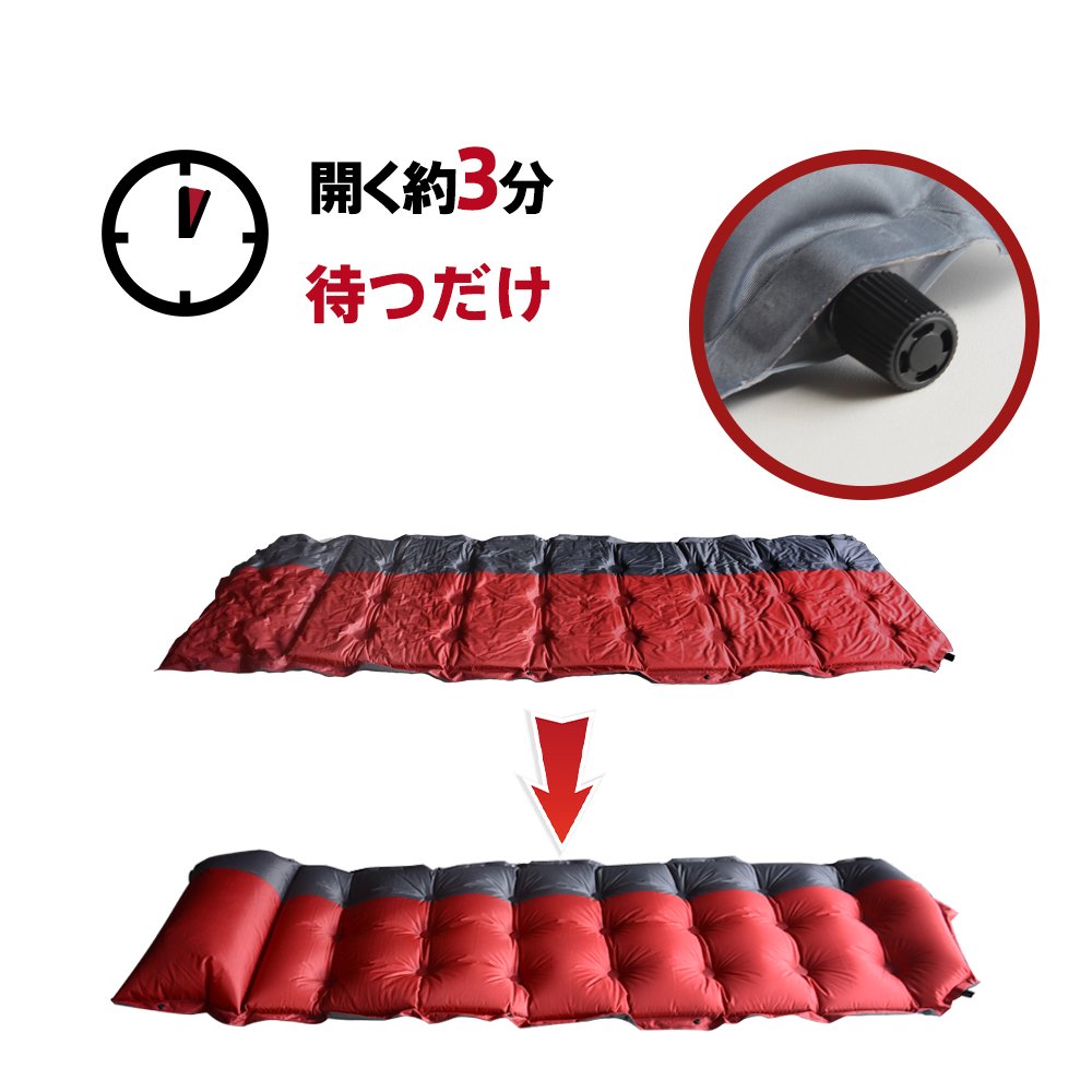 By opening the air valve attached to the mat and pillow, the mat will automatically inflate with the air naturally.