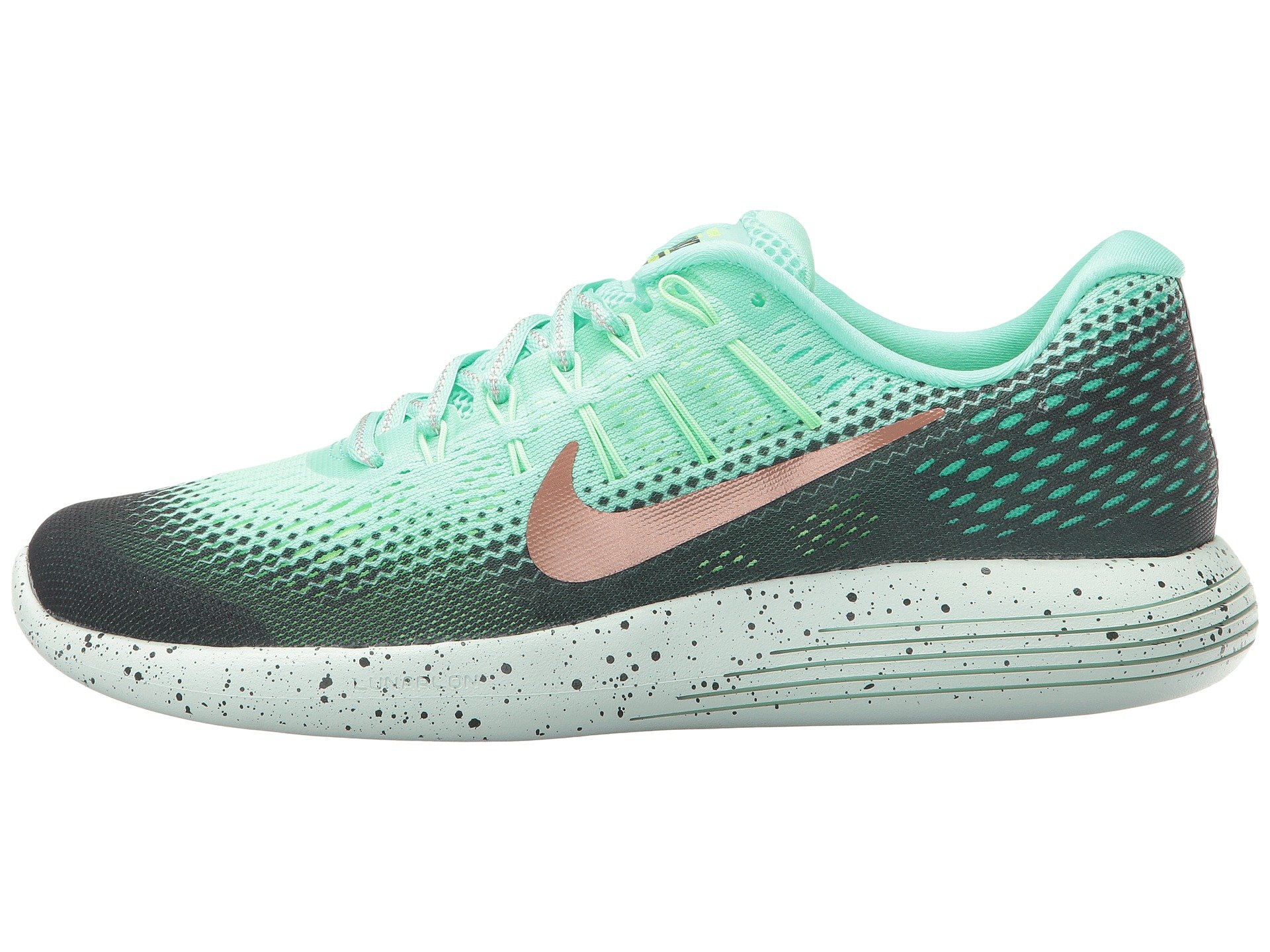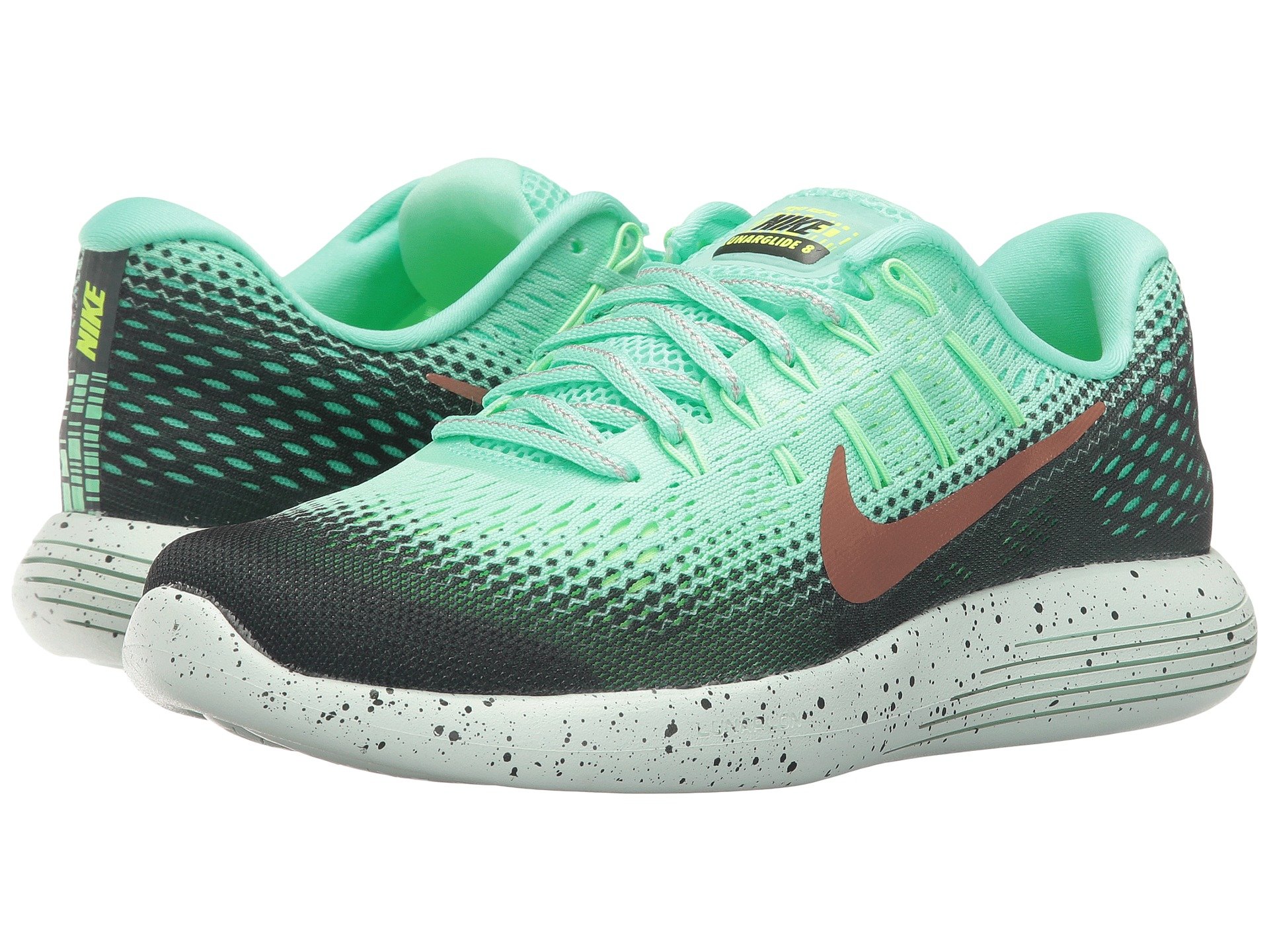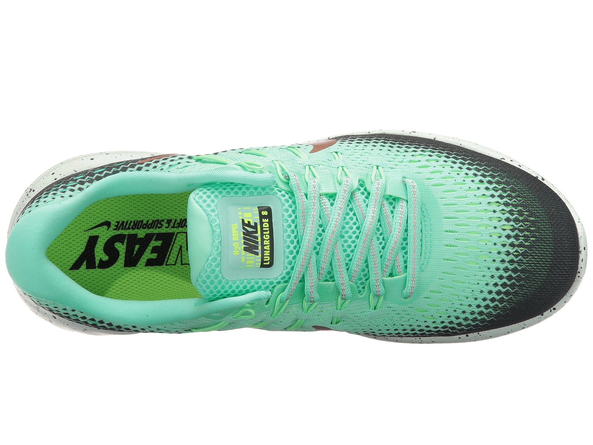 | Product Information SKU: #8753694Sail over the asphalt effortlessly, rain or shine, in the Nike? Lunarglide 8 Shield running shoe.Predecessor: Lunarglide 7.Support Type: Overpronation/Stability. Cushioning: High energizing cushioning. Surface: Road. Differential: 10 mm.Lightweight, single-layer deconstructed mesh and thin synthetic uppers provide breathability and style. DWR (Durable Water Repellent) coating protects against the elements. Lace-up closure. Dynamic mid-foot support built into the laces. Lightly padded tongue and collar. Breathable fabric lining offers a great in-shoe feel. Removable molded foam insole. Soft IU midsole utilizes auxetic technology that allows the foam to expand and contract, allowing the foot to splay. IU 002 carrier combines strategically-placed laser sipes to promote a smooth, durable ride and reliable traction.Imported. Product measurements were taken using size 8.5, width B - Medium. Please note that measurements may vary by size.Weight of footwear is based on a single item, not a pair.Measurements: Weight: 8 oz |