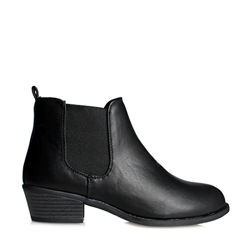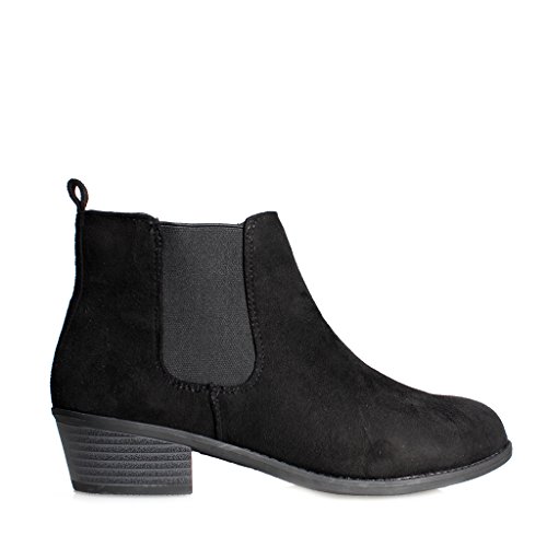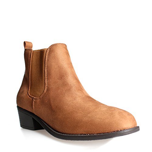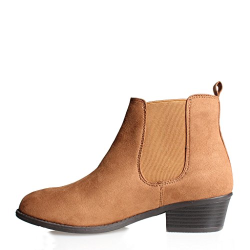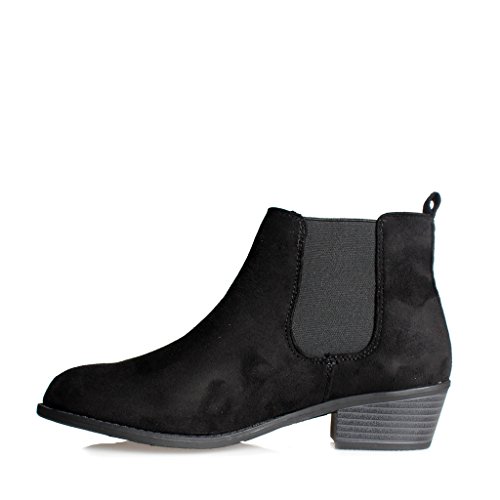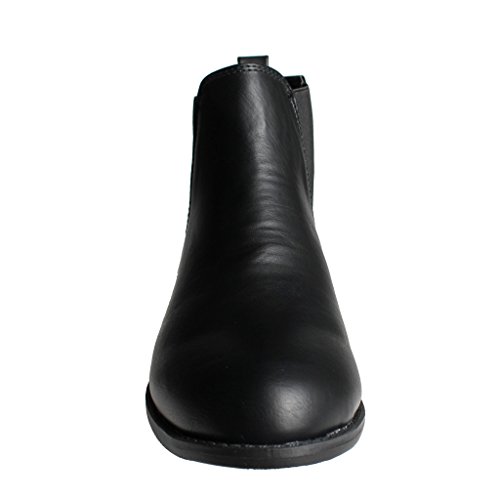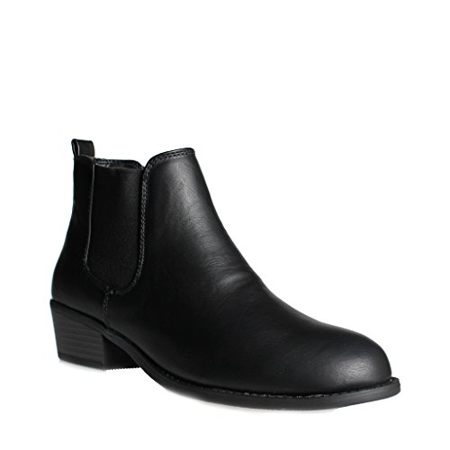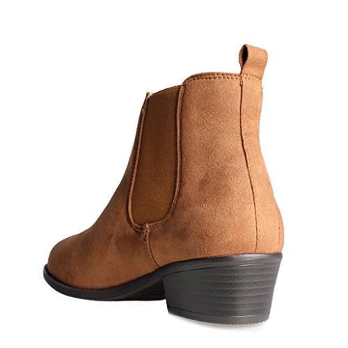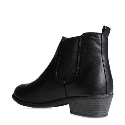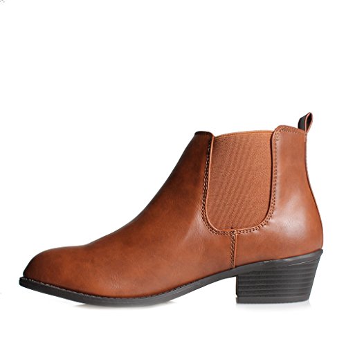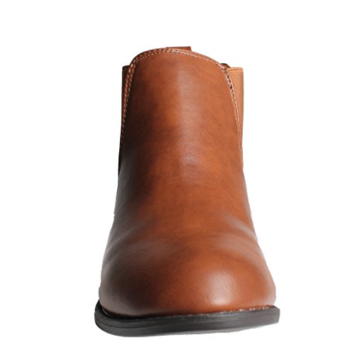 Product Description Amp up your casual wardrobe with this stylish almond toe bootie. Featuring leatherette upper and round toe, elastic side panel, and block heel. Finished with a lightly padded insole and soft interior lining for comfort. And easy slip on style. 0