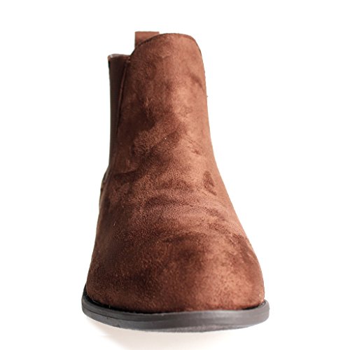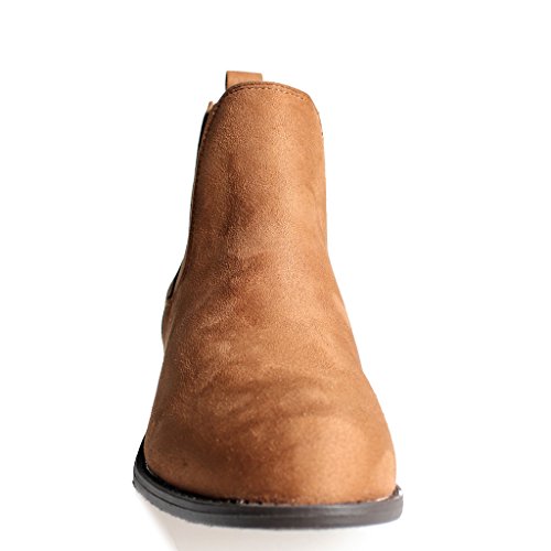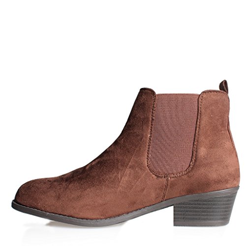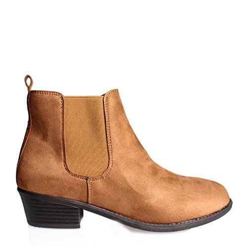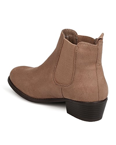 Women's TD02 Almond Toe Chunky Heel Elastic Chelsea Simple Flat Heel Ankle Riding Booties