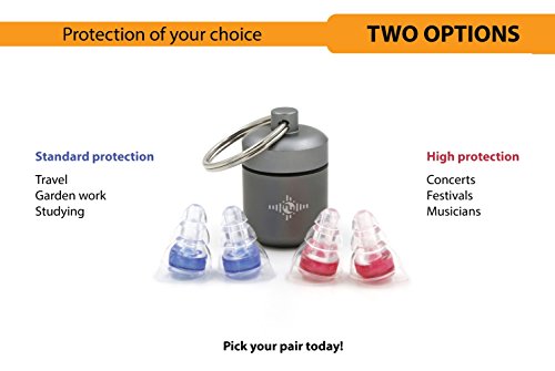 - PROTECTION & SELECTION Minimize the noise around you, while maintaining the quality of sound around you. You can choose from our standard protection (blue) and high protection (red) earplugs!