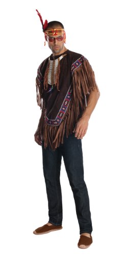 -. Binding : Apparel -. Brand : Rubie's -. Department : costumes -. Feature : Native american costume features a poncho style shirt / Headband included / Easy to wear because you wear with your own comfortable pants / Men's size standard fits up to a size 44 jacket, xl fits up to size 46 jacket / Rubie's costume company has been leading the way in halloween and year-around dress up since 1950 -. Genre : Historical -. IsAdultProduct : 0 -. Label : Rubies Costumes - Apparel -. Manufacturer : Rubies Costumes - Apparel -. PackageQuantity : 1 -. ProductGroup : Apparel -. ProductTypeName : ADULT_COSTUME -. Publisher : Rubies Costumes - Apparel -. Studio : Rubies Costumes - Apparel -. Title : Rubie's Costume Heroes And Hombres Men's Native American Costume Poncho
