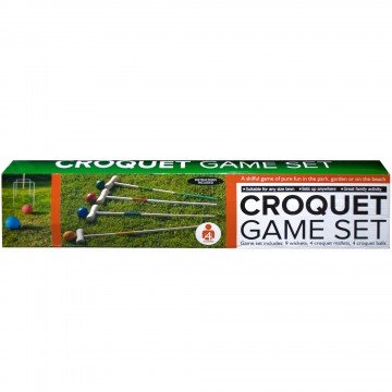 Studio : bulk buys Publisher : bulk buys Binding : Kitchen Product Description Perfect for playing on lawns, gardens, parks and beaches, this 19-piece Wooden Croquet Game Set features high quality wooden pieces for long-lasting play. Set includes: 4 mallets, 4 colored balls, 9 wickets and 2 goal stakes. For two or four players. For ages 3 and up. Instructions included. Comes packaged in an individual box. Box measures approximately 30.25" x 3.25" x 6.375". 0
