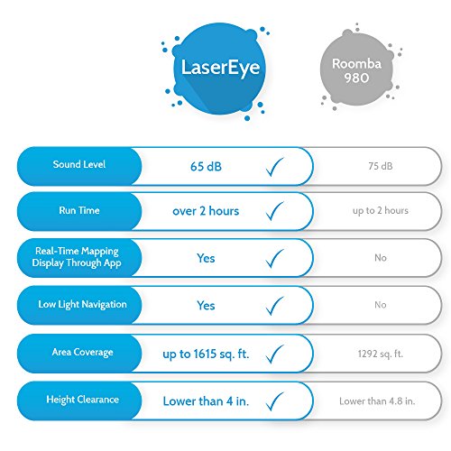 Laser Eye's unbeatable Laser + SLAM technology offers state of the art laser mapping that guarantees 100% SPOTLESS floors. Enjoy a clean up robot that 3D scans surroundings to pinpoint its own location and actively map wall and furniture positions. It won’t get lost even when you rearrange your rooms.
