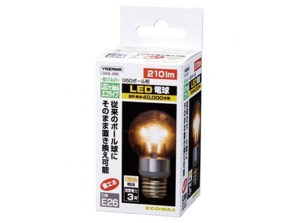 | 仕様 | 口金:E26 光源色:電球色相当 色温度:2700K カラー:クリア 全光束:210lm 消費電力:3W 定格電圧:100V 定格入力電流:0.05A 設計寿命:約40000時間 取扱説明書付 |
