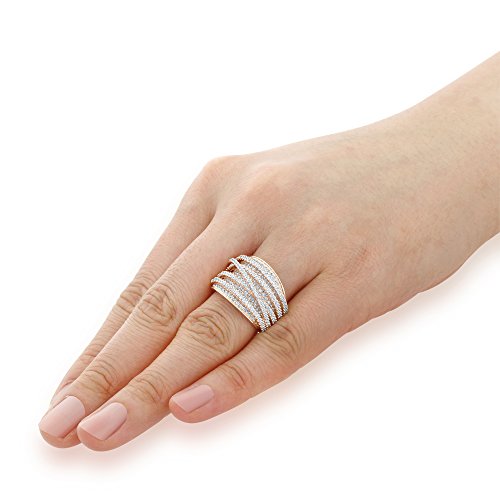 This beautiful 14K Rose Gold Plated Sterling Silver Intertwined Design CZ Beautiful Pave Set Right Hand Ring 15mm, 6 by Double Accent is meticulously crafted in gleaming and durable Sterling Silver.
