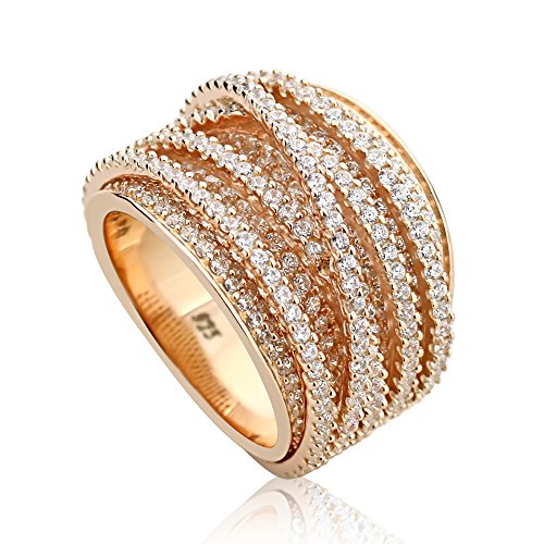 14K Rose Gold Plated Sterling Silver Intertwined Design CZ Beautiful Pave Set Right Hand Ring 15mm, 6