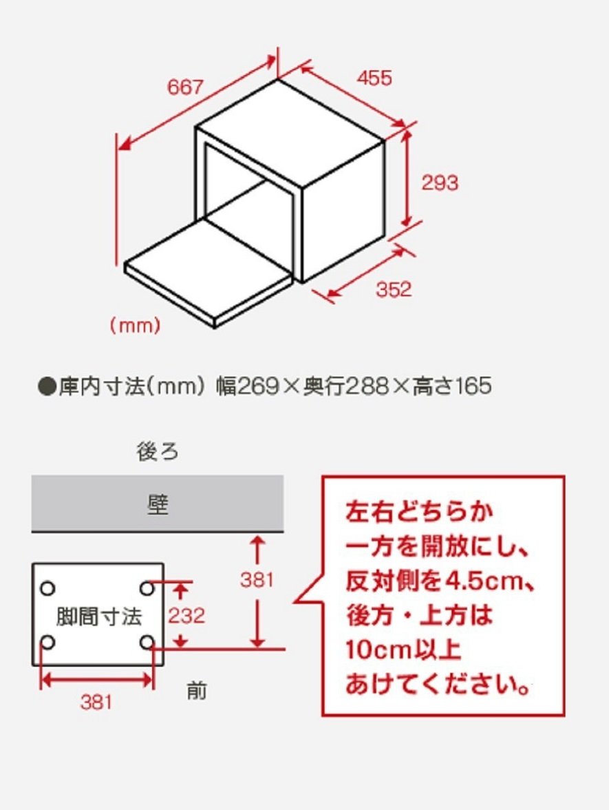 950 W inverter (※ high-frequency output 950 W is a short-time high output function (maximum 1 minute 30 seconds), it automatically switches to 500 W during cooking.This is an automatic limited menu ("1 warming up" button and warm up