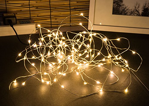 Oak Leaf Bright LED Dewdrop Starry Party String Lights create a magical lighting experience for your home, party or business The LED Outdoor String Lights are made with a fine shapeable silver wire that can conform to any shape to add a beautiful decorative accent. Flexible yet durable, the string lights are perfect for positioning lights to any decorative or holiday project. Warm-Yellow Mini LED's are individually mounted along the string and provide an elegant sparkling glow that can be seen from any angle.