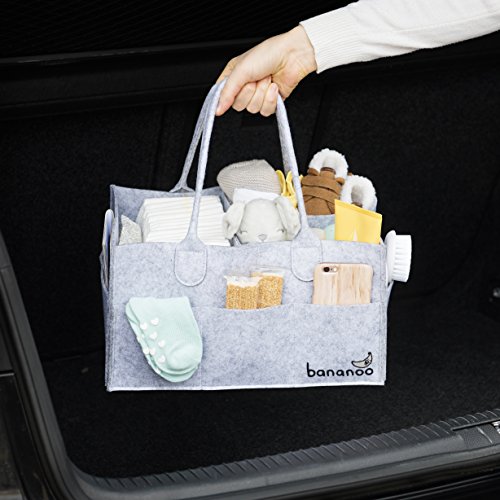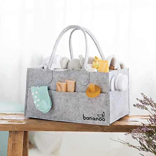 Tired of carrying too much baby gear? Bananoo Baby Diaper Caddy makes it easy to change diapers by organizing all your baby’s products in a single well-organized place. Sturdy Felt. Ready to carry many things, our felt is designed and tested to hold weight without sagging even when you place weight only on one side or in the middle. Custom Organization. Our removable separators attach with high quality Velcro to allow for custom organize. Up to 3 different design options. Versatility. Done with diapering? Use it for other storage purposes, such as toys, books, pet accessories, picnics, etc. For Boy and Girl. Neutral grey diaper caddy perfect for boys and girls, and easily combines with any nursery decor. Travel Ready. Take your diaper caddy while traveling to make it easier to take always care of your baby. Handy Car Organizer. Keep in the car to organize your baby boy or girl nursery gear, and immediately grab it when you need it. Practical size. This 13.2" x 9.2" x 7.1" caddy makes it extremely handy with enough space to fit and organize diapers, clothes, creams, wipes, toys, snacks, socks, pacifiers, clothing, blankets, muslins, sunglasses and even your smartphone, etc. Premium quality. Our diaper caddy is made of high-quality materials so you can be ensured that it will last for many years to come. 100% Satisfaction Guarantee! Our Diaper Caddy is backed by our manufacturer 30-day money back guarantee and 1-year free replacement warranty. Order your Baby Diaper Caddy today with confidence by clicking on the Add to Cart button. 0 |