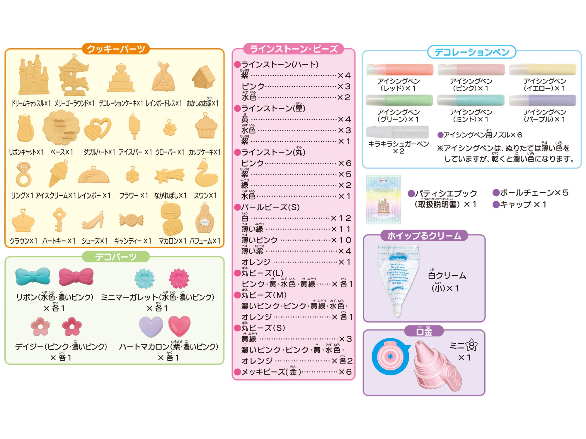 You can make 23 kinds of icing cookie access with a volume full set.